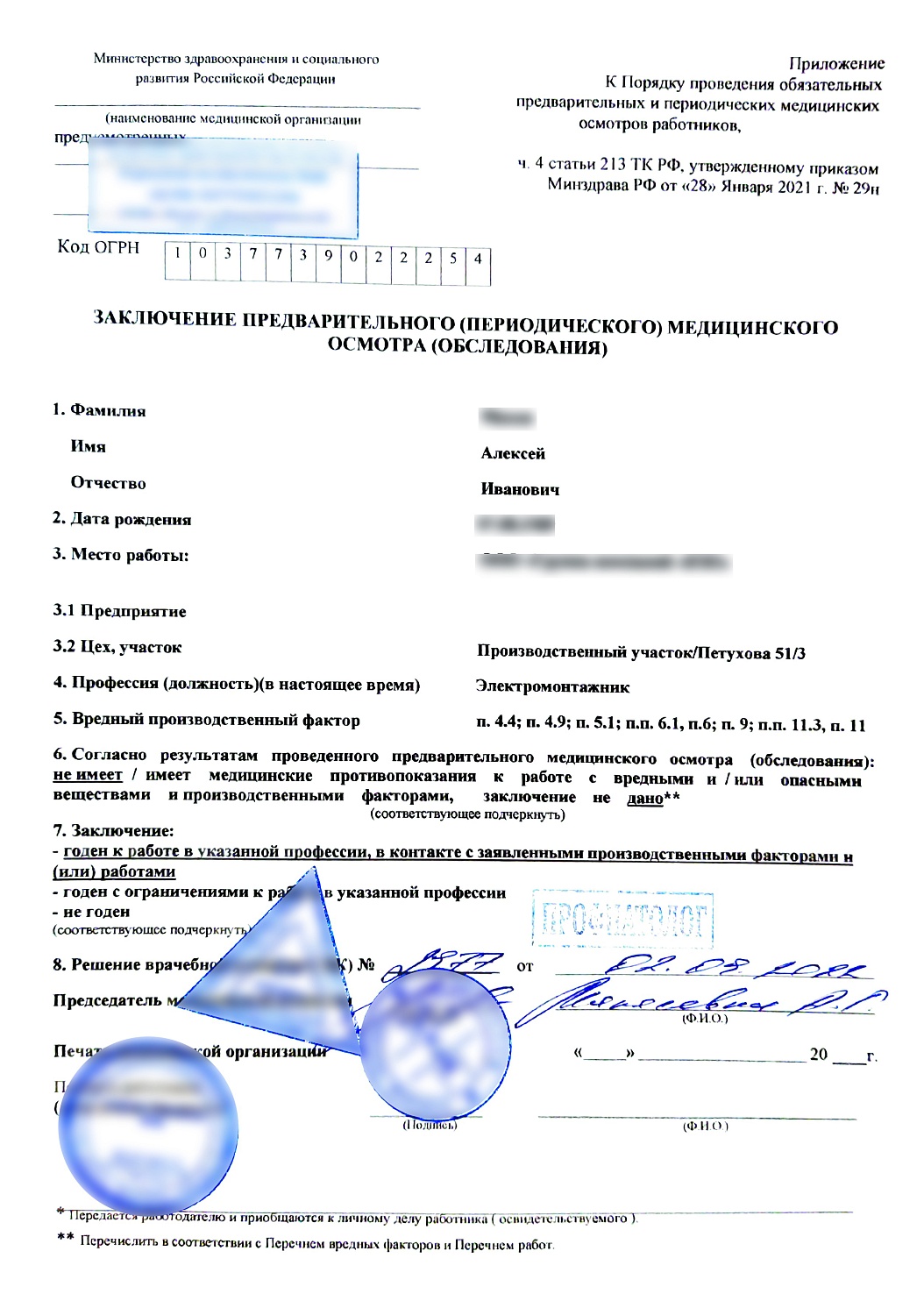 Прохождение медосмотра является обязательным условием не только при трудоустройстве, но и регулярно в течение всего времени выполнения своих профессиональных обязанностей. Как правило, времени на походы по врачам и прохождение медицинской комиссии у таких специалистов катастрофически не хватает. Вот почему мы рекомендуем не тратить его даром, а сразу обращаться за профессиональной помощью в нашу компанию и купить готовый документ. Готовая справка 29н будет готова всего за 24 часа, что поможет решить массу проблем и сэкономить нервы. Требования закона будут выполнены, так как справка 29н является официальным документом, подтверждающим профпригодность работника.