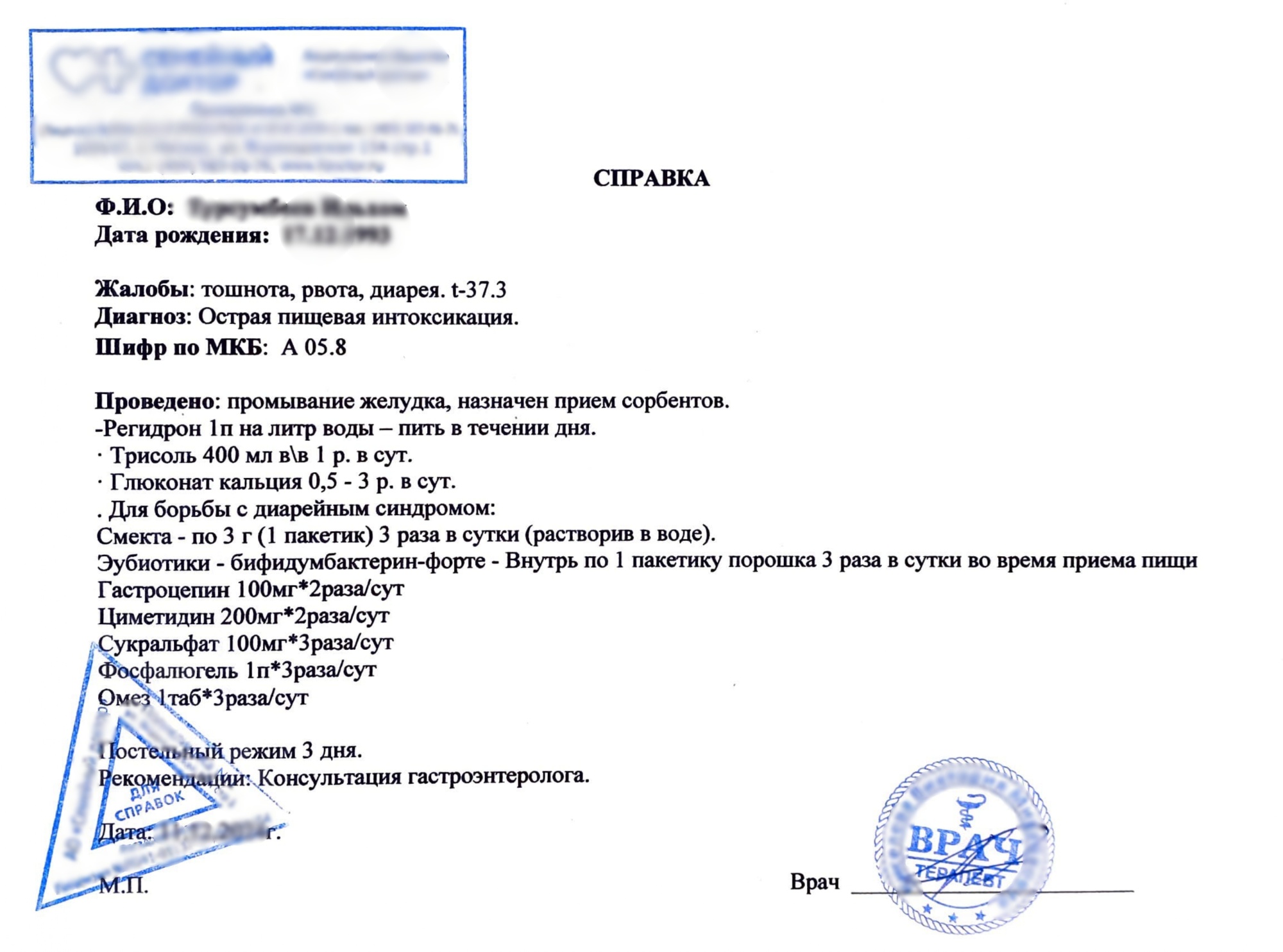 Справка в свободной форме от врача