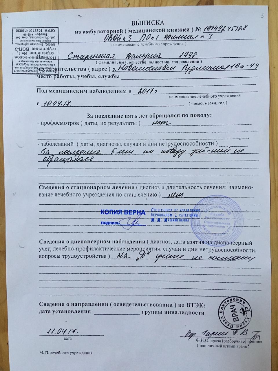 Вы можете совершенно безбоязненно купить выписку из истории болезни форма 027/у в нашей компании. Мы предоставляем только настоящие бланки, заполненные в действующих лечебных организациях. На всех картах будут проставлены печати и отметки, предусмотренные в данном случае. У нас также можно заказать справки для работы или продлить медкнижку. Обращайтесь!